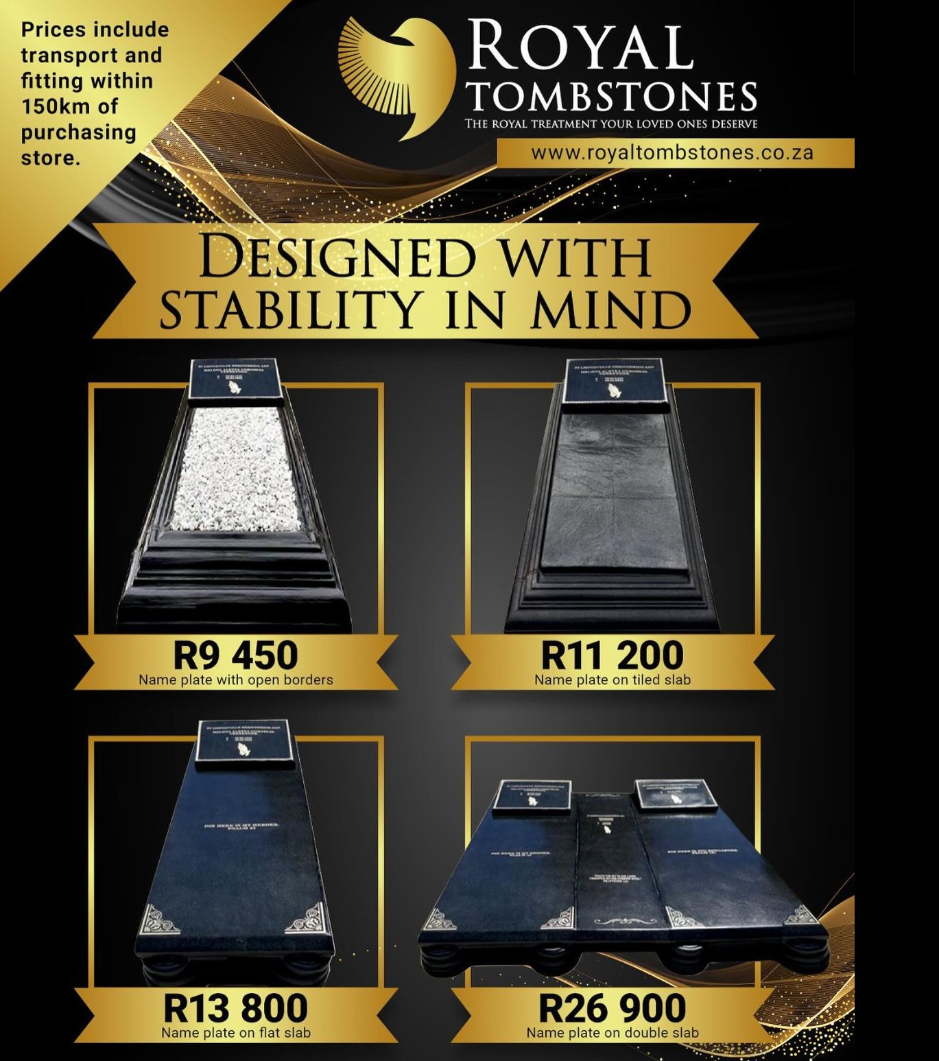 Royal tombstones has been offering high quality tombstones, at the most affordable prices in South Africa, to grieving family members for over fifteen years. Being privately owned, Royal Tombstones is very much a value driven company and strive to treat their customers with compassion and understanding.